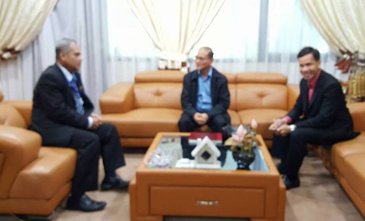 Dr. Muyong signs document at the SEAMO-RECSAM Office at Malaysia. Looking on is Professor Jasper L. Pastrano.