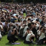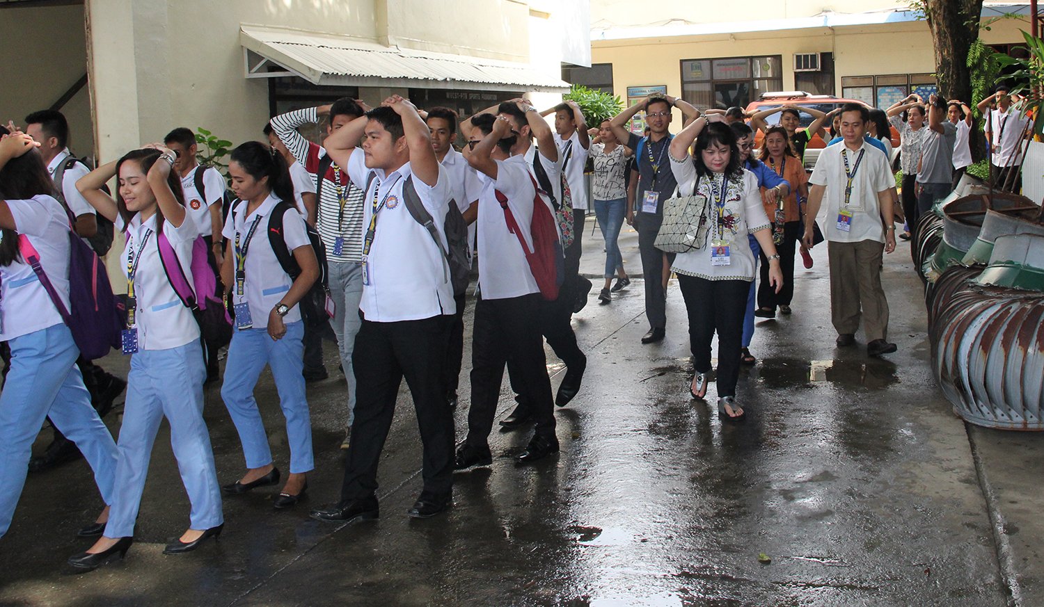 The participants take time to pose with Zhejian Technical Institute of Economics at the background.