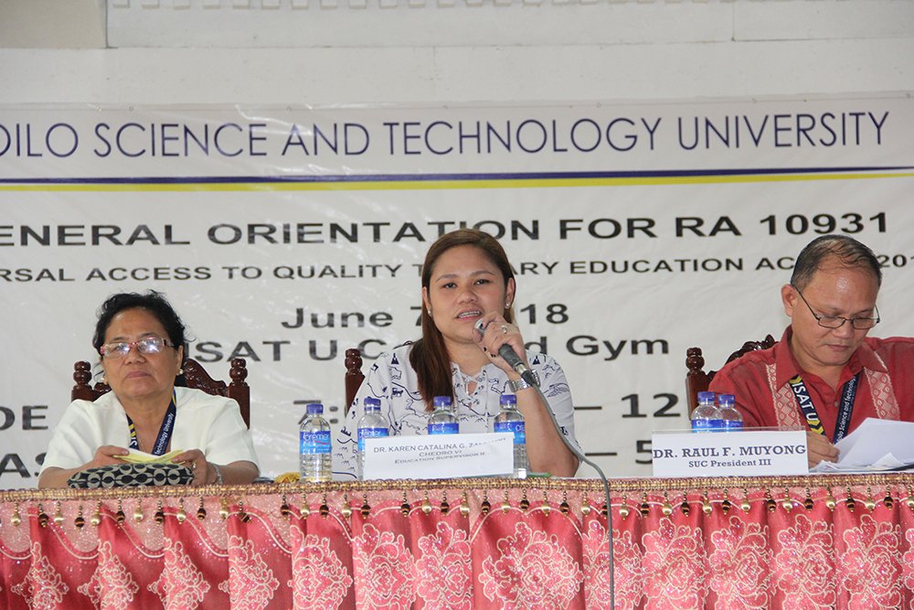 Aimed at informing the parents and students of the mechanics of the free college education, an orientation on Republic Act 10931 or the Universal Access to Quality Tertiary Education Act was held on June 7, 2017 at the University Multi-purpose Educational Center.