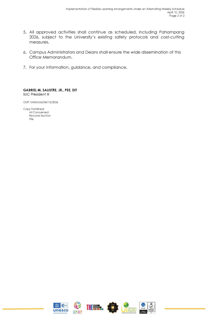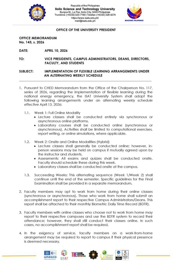 IMPLEMENTATION OF FLEXIBLE LEARNING ARRANGEMENTS UNDER AN ALTERNATING WEEKLY SCHEDULE
