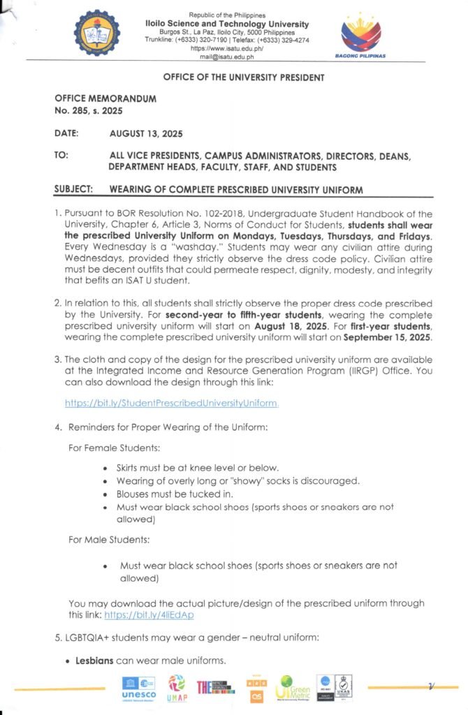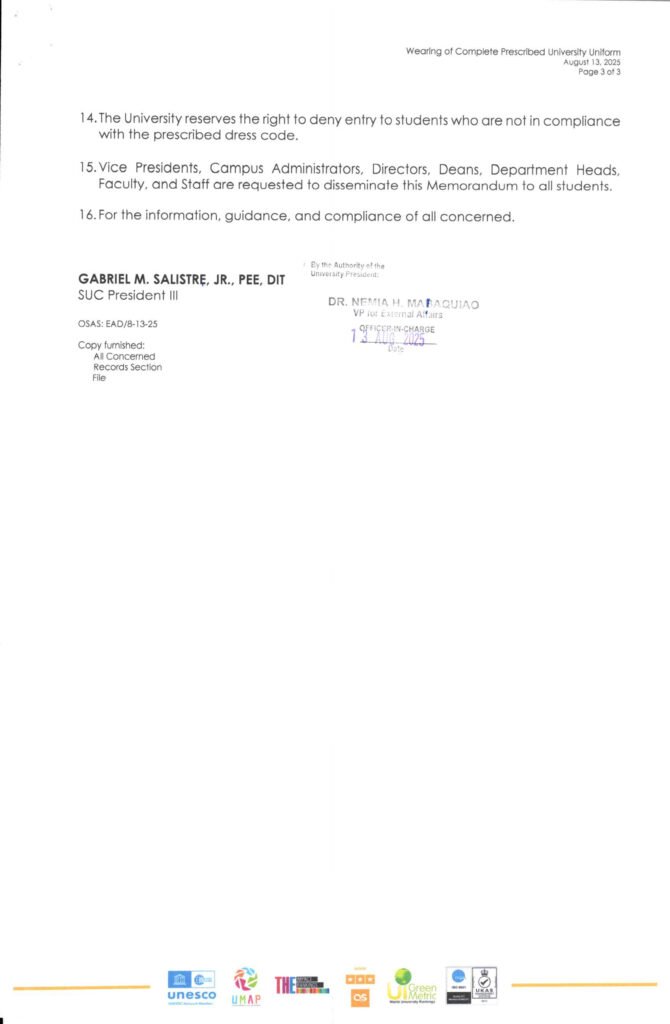WEARING OF COMPLETE PRESCRIBED UNIVERSITY UNIFORM